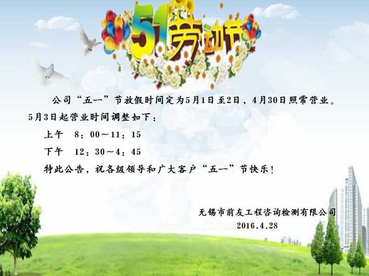 | 關(guān)于“五一”節(jié)放假及節(jié)后營業(yè)時間調(diào)整的公告 | ||