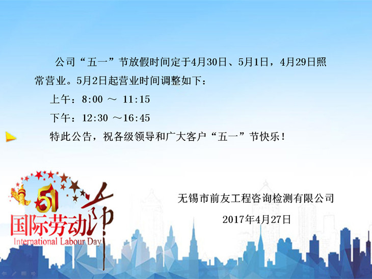 網(wǎng)址: http://www.aoqiangdz.com| 關(guān)于“五一”節(jié)放假及節(jié)后營(yíng)業(yè)時(shí)間調(diào)整的公告 | ||