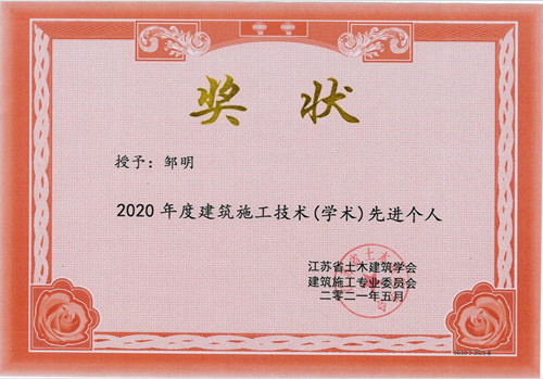 江蘇省土木建筑學會建筑施工專業委員會第十屆三次會議暨2021年學術交流會于2021年5月26日至28日在揚州市召開。 會議總結交流了各市學會工作,研究并完善2021年省建筑施工專業委員會工作計劃;會議組織了學術交流,主題為“科技引領建造、創新江蘇施工技術”;評審了2020年度江蘇省優秀施工學術論文,從全省各市推薦參加交流的300篇論文中,評出一等獎33篇,二等獎62篇,三等獎85篇;評選了2020年度省土木建筑學會建筑施工技術(學術)先進個人12人、先進集體6個。 無錫市前友工程咨詢檢測有限公司,為國家高新技術企業,持續學習創新。這次,由鮑哲等撰寫的“內窺鏡檢測技術在裝配式混凝土結構工程的應用”榮獲一等獎。