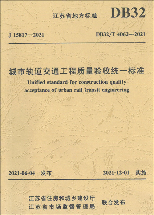 為加強城市軌道交通工程質量管理,統一江蘇省內城市軌道交通工程施工質量驗收,保證工程質量,由南京市軌道交通建設工程質量安全監督站、江蘇省建筑工程質量檢測中心有限公司等單位編制了《城市軌道交通工程質量驗收統一標準》。該標準已于2021年6月4日批準為江蘇省地方標準,編號為 DB32/T4062-2021,自2021年12月1日起實施。 該標準共7章,主要技術內容包括:1.總則;2.術語;3.基本規定;4.工程質量驗收單元劃分;5.單位工程質量驗收;6.項目工程驗收;7.竣工驗收;附錄 A~附錄L。 城市軌道交通是指采用專用軌道導向運行的城市公共客運交通系統,包括地鐵、輕軌、單軌、有軌電車、市域快速軌道、磁浮系統、自動導向軌道系統等。單位工程質量驗收是指在單位工程完工后,檢查工程設計文件和合同約定內容的執行情況,評價單位工程是否符合有關法律法規和工程技術標準,符合設計文件及合同要求,對各參建單位的質量管理進行評價的驗收。項目工程驗收是指各項單位工程質量驗收后、試運行前,確認建設項目工程是否達到設計文件和標準要求,是否滿足城市軌道交通試運行要求的驗收。竣工驗收是指項目工程驗收合格、試運行期滿,結合運行效果,確認建設項目是否達到設計目標及標準要求的驗收。 該標準適用于江蘇省新建、擴建和改建的地鐵、輕軌、市域快速軌道系統等城市軌道交通工程施工質量的驗收,并作為江蘇省城市軌道交通工程各專業驗收標準編制的統一準則。